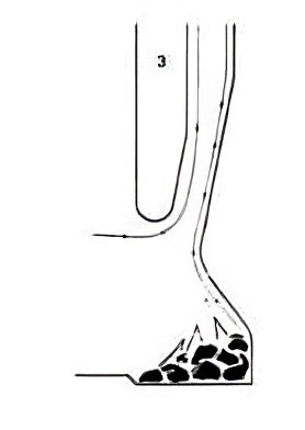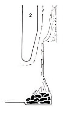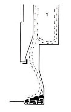 2. Professor Peter 0. Rosin discovered, through scientific experiment, that Rumford’s flue theory was incorrect. He observed that the hot gasses steamed up the back wall of the flue in stratified layers and that a smoke shelf in fact disrupted the efficient flow by creating eddies.